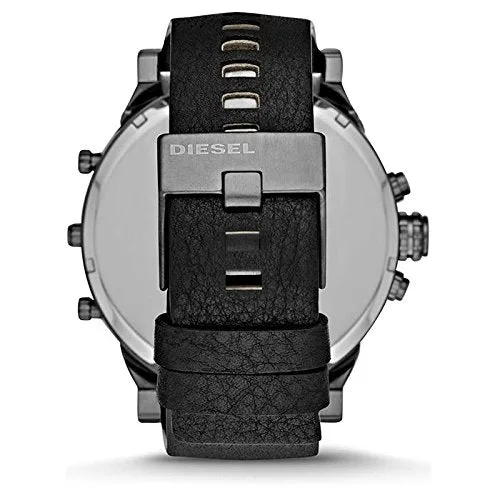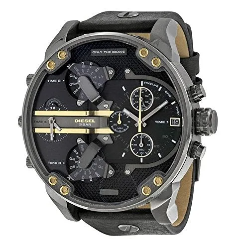 Einzelheiten: Herren Uhren DIESEL MR DADDY 2.0DZ7348-Lederband und Zifferblatt aus Stahl schwarz/gold gekennzeichnet durch eine Beschichtung in Gunmetal, Lederarmbndern In schwarzem Leder und der gewohnten Linie Oversize, das Mr. Daddy 2.0hat Stil und eine schamlose Charakter. Uhr jugendlich, modisch, Merkmal, dass seit jeher zeichnet der Marke Diesel. Lederband, Edelstahlgehuse mit 4Takt Abmessungen Gehuse: 51mm Gehusedicke: 12mm Wasserdichtigkeit: 5atm Gehusematerial: Edelstahl Finish Gehuse: gebrstet, poliert Armbandmaterial: Leder Armbandfarbe: Dunkelbraun Farbe Zifferblatt: blau Uhrwerk: Quarz/Chronograph Stahl, Leder