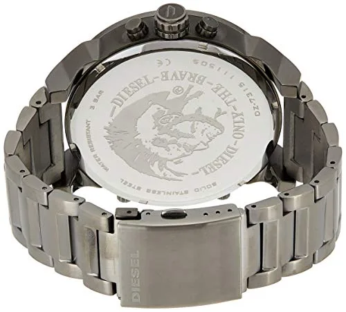 - DIESEL Herren Uhr – Graues rundes Edelstahlgehuse (Durchmesser 66 mm) in glnzend und gebrstet – 4 Kronen und 2 Drcker – Wasserdicht bis 3 ATM