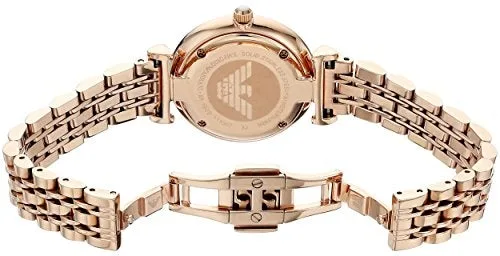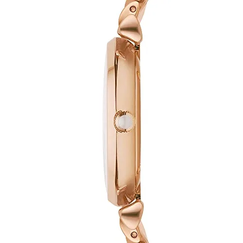 - Rundes, rosgoldfarbenes Edelstahlgehuse mit Perlmuttzifferblatt