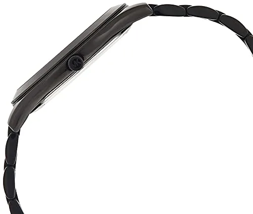 - Rundes, schwarzes Edelstahlgehäuse mit schwarzem Zifferblatt