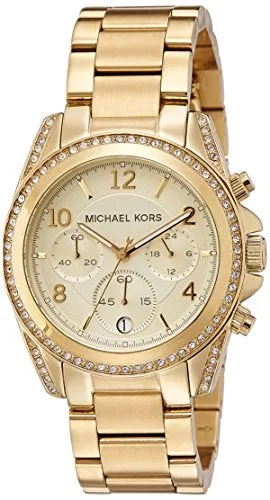 - MICHAEL KORS Damen Uhr - Rundes Edelstahlgehäuse (Durchmesser 39 mm), glänzend gold - 2 goldene Drücker - Wasserdicht bis 10 ATM - Lünette mit klaren Glassteinen