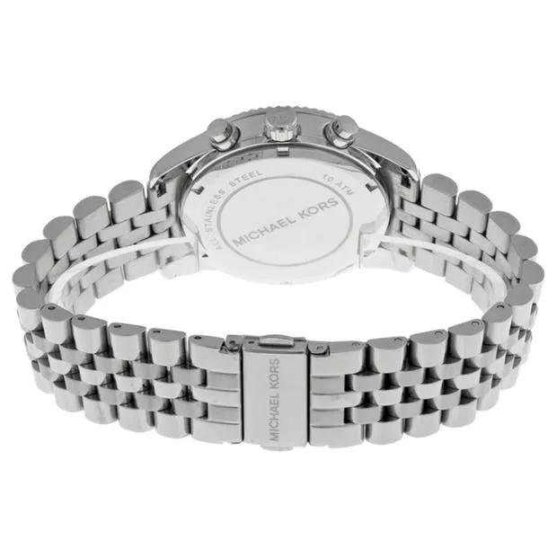Dieses Modell hat ein schnes 38 mm Edelstahl Gehuse mit einer Dicke von 13 mm. Das Glas dieser Michael Kors Damenuhr ist Mineralglas und hat eine Quarzuhr. Das band ist aus Edelstahl gefertigt und hat eine schne Farbe, nmlich Silber die gut zum Gehuse in der Farbe Silber passt. Auerdem hat das Modell folgende Funktionen; 24–Std-Anzeige,Chronograph,Datum. Diese Michael Kors MK5555 Uhr hat eine Wasserbestndigkeit von 10 ATM.