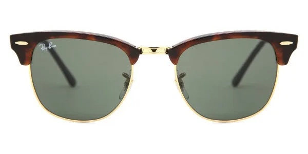 Dieses hochmodische Unisex-Modell ist eine überarbeitete Version des klassischen Clubmaster und verfügt über einen braunen Acetat-Oberrahmen und braune Bügel, die auch das Ray Ban-Logo tragen. Der untere Bereich der Fassung und der Steg sind mit Golddraht versehen und die Gläser sind grün getönt und tragen auch das Markenlogo.