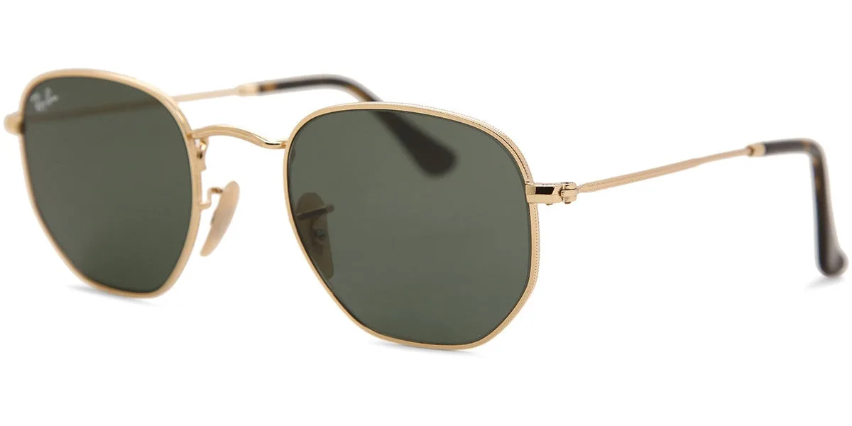 Die Herren Ray-Ban Sonnenbrille Hexagonal RB3548N (Hexagonal RB3548N 001 51) hat einen goldenen Rahmen und ein grünes Glas. Die Hexagonal RB3548N 001 51 wird mit einer offiziellen 2-Jahres-Garantie von Ray-Ban Sonnenbrillen geliefert.